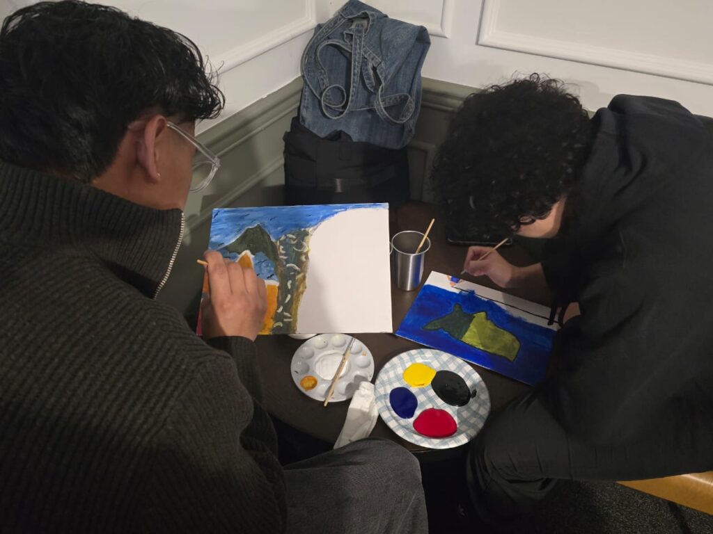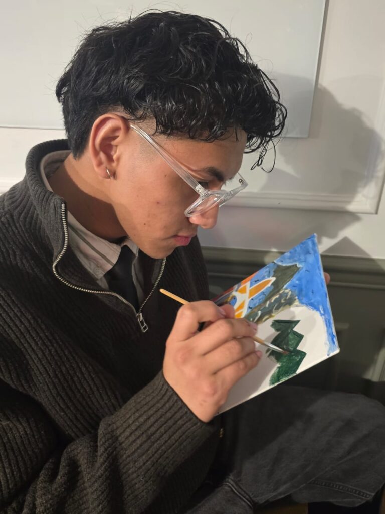 En el corazón del proyecto se encuentra la serie Rutas, de Studio Lenca. A través de una serie de talleres, 25 estudiantes trabajaron junto al artista para crear pinturas que reflejan sus trayectorias personales, explorando temas como la memoria, el hogar y la esperanza. Las y los estudiantes provenían de distintas escuelas y hablaban diferentes idiomas, pero rápidamente encontraron conexión a través de la pintura: trabajando lado a lado, compartiendo música y creando historias en conjunto.
